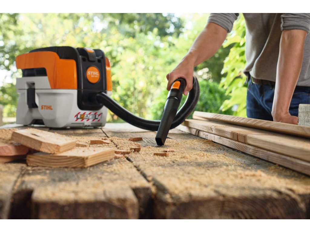 STIHL SEA 50 je vybaven univerzální hubicí, štěrbinovou hubicí, otočnou harmonikovou hadicí a dvěma prodlužovacími trubkami, které umožňují snadné přepínání mezi různými typy úklidu.