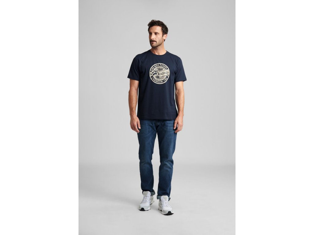 Na hrudi dominuje výrazný „heritage“ potisk s pilou STIHL CONTRA – první jednoruční motorovou pilou značky, která od roku 1959 udávala směr. Motiv v patinovaném stylu dodává tričku autentický, sběratelský charakter.